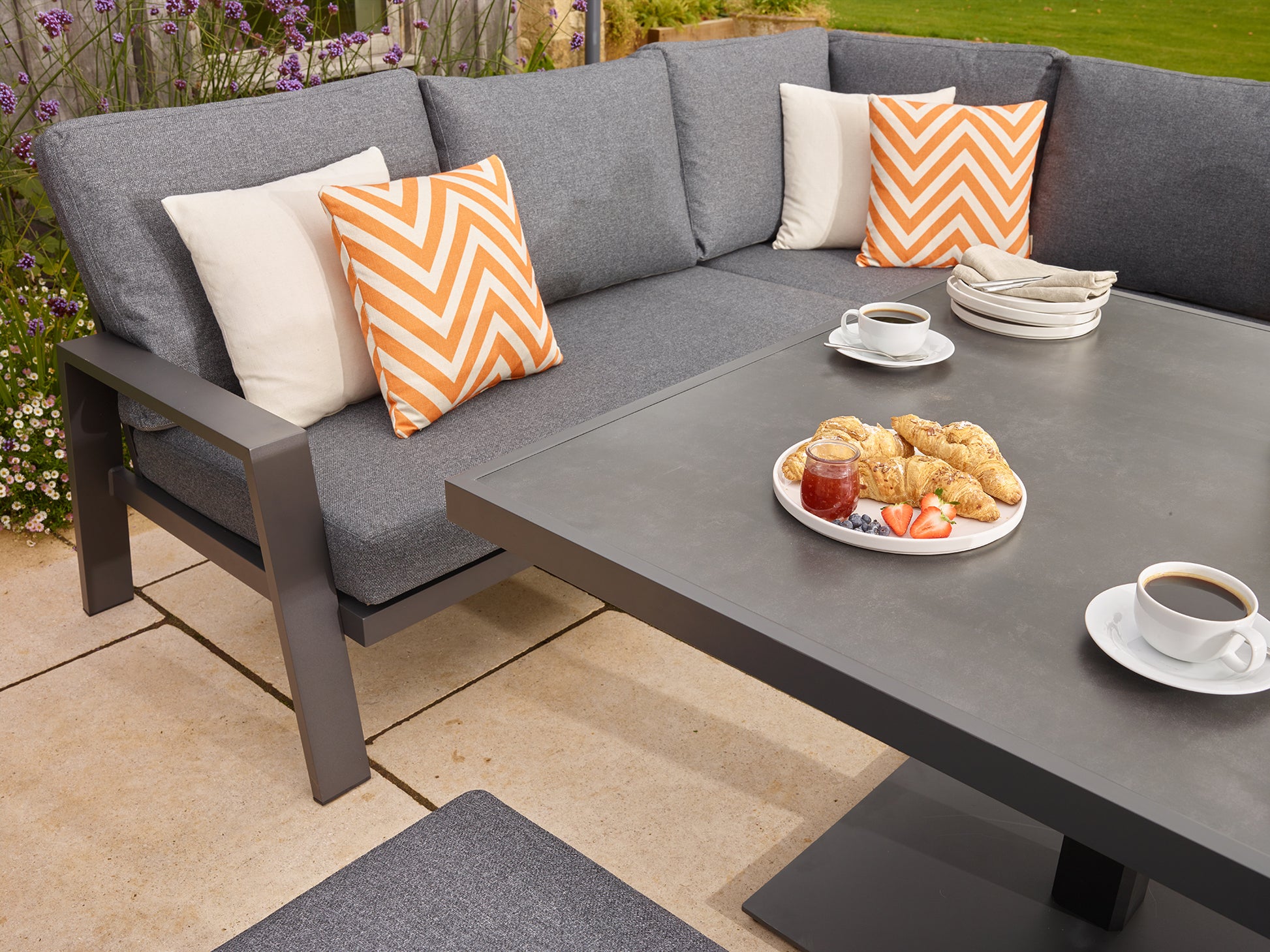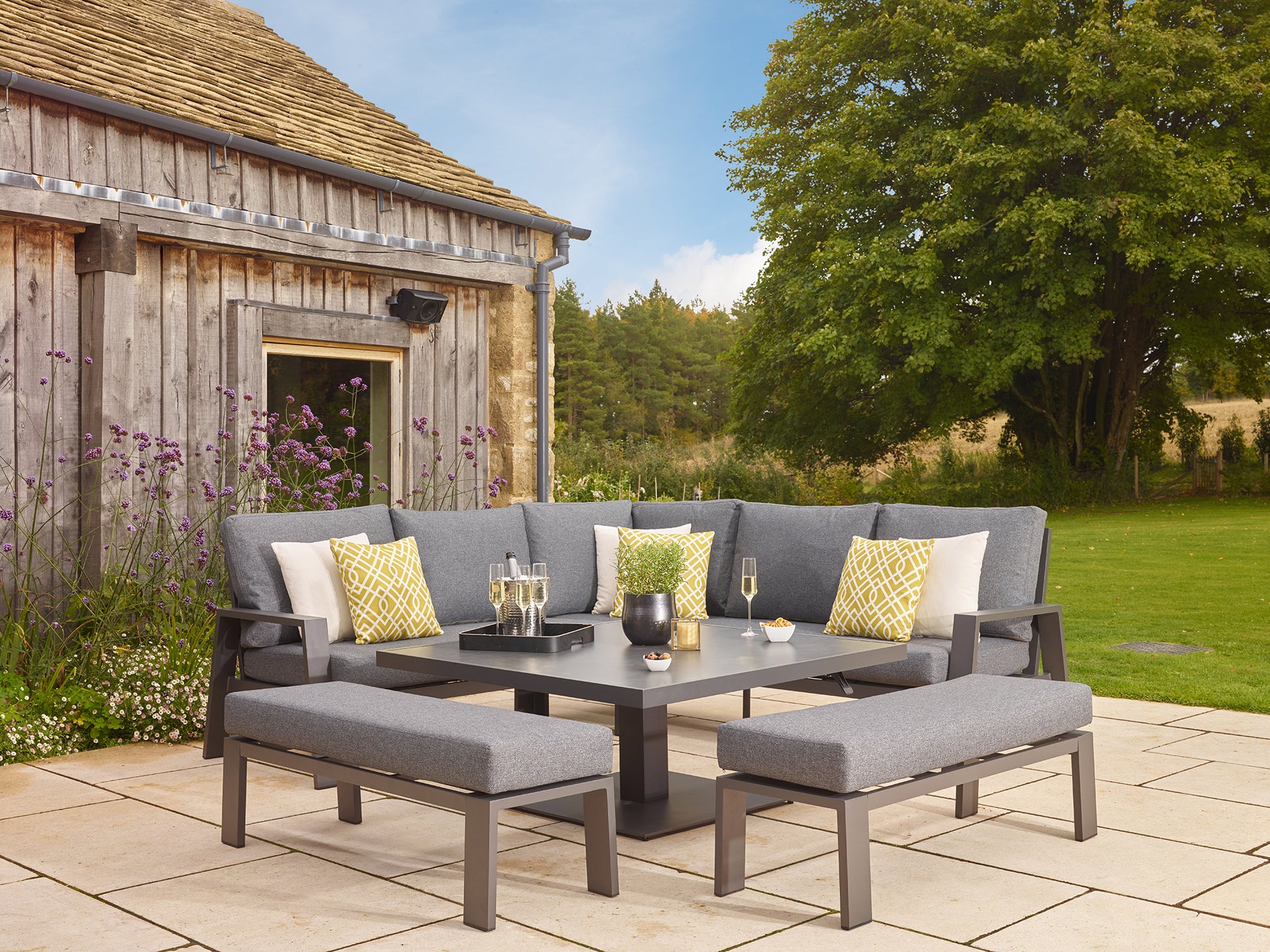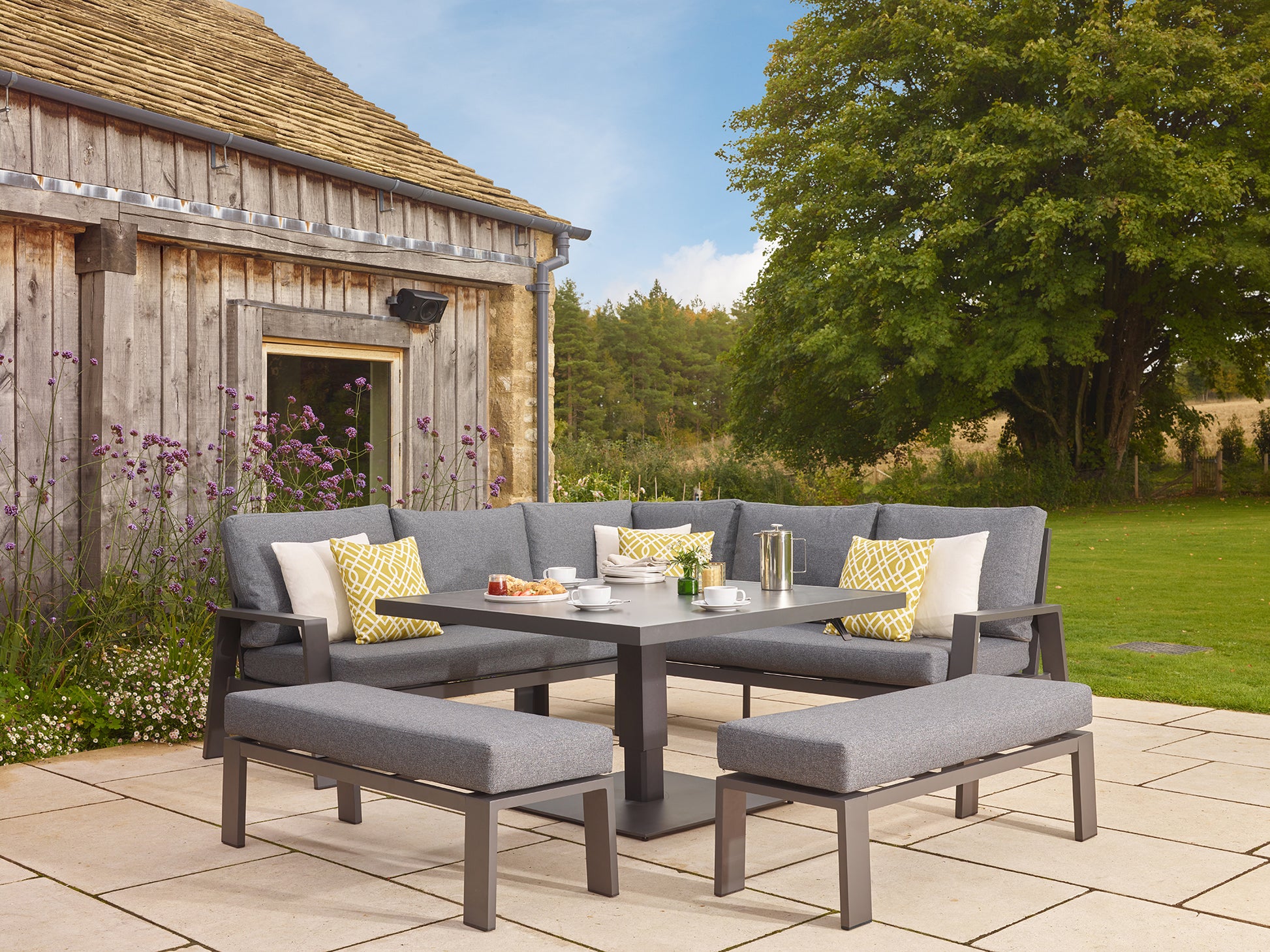 - 2 x Amsterdam Bench in Anthracite with slate season-proof Eco fabric cushions