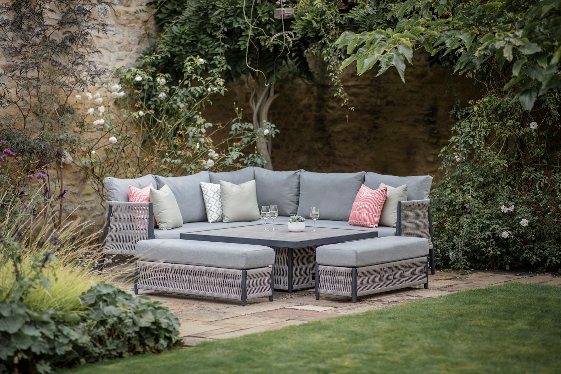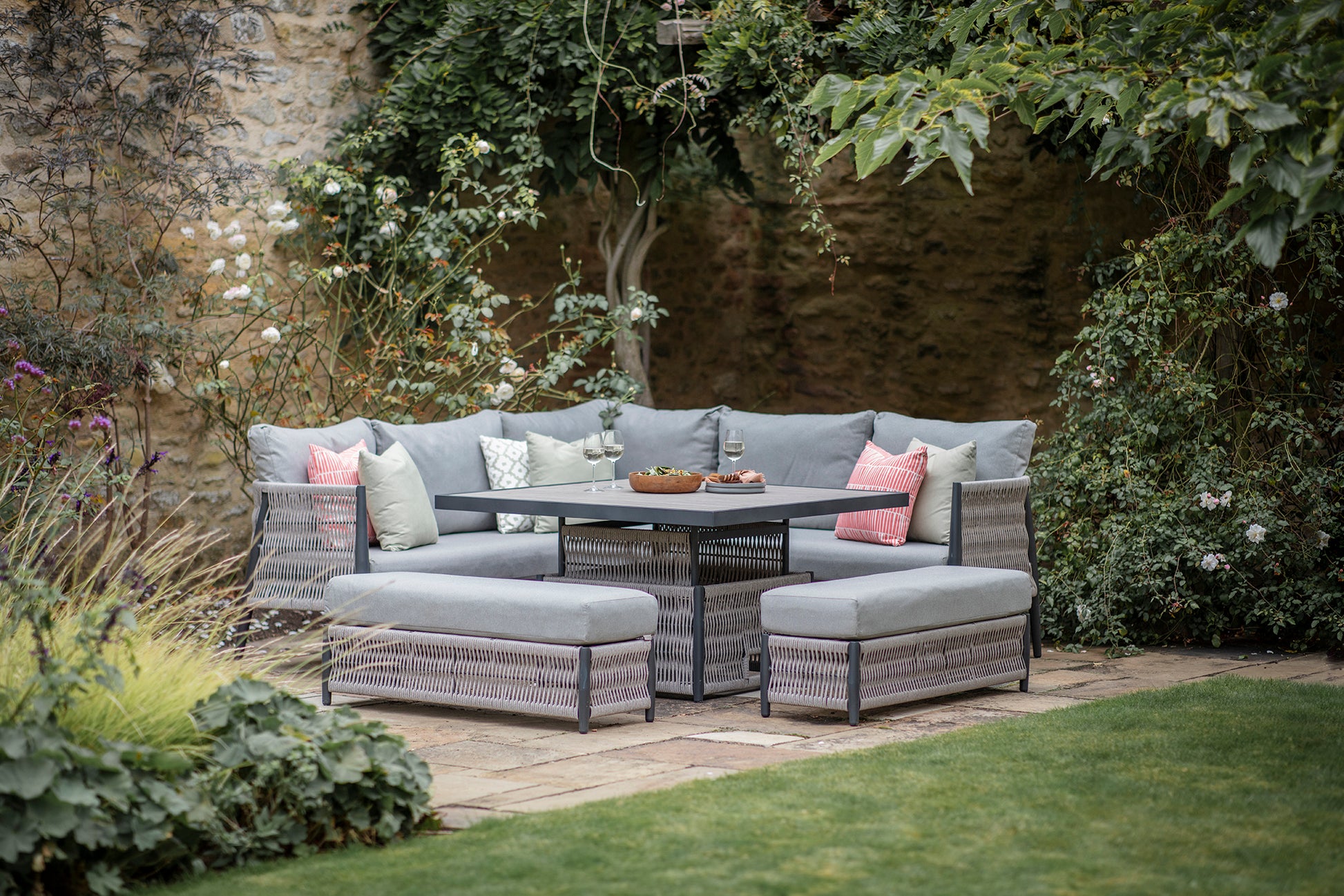 Waterside or countryside, our Mauritius sofa set has chilled out vibes written all over it. With its clever height-changing table, this versatile corner sofa set gives you the option to switch from low level morning coffee mode to dining height in an instant. Two smart padded benches maximise your entertaining space without skimping on style.