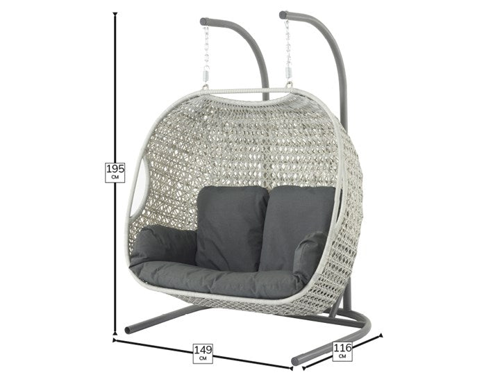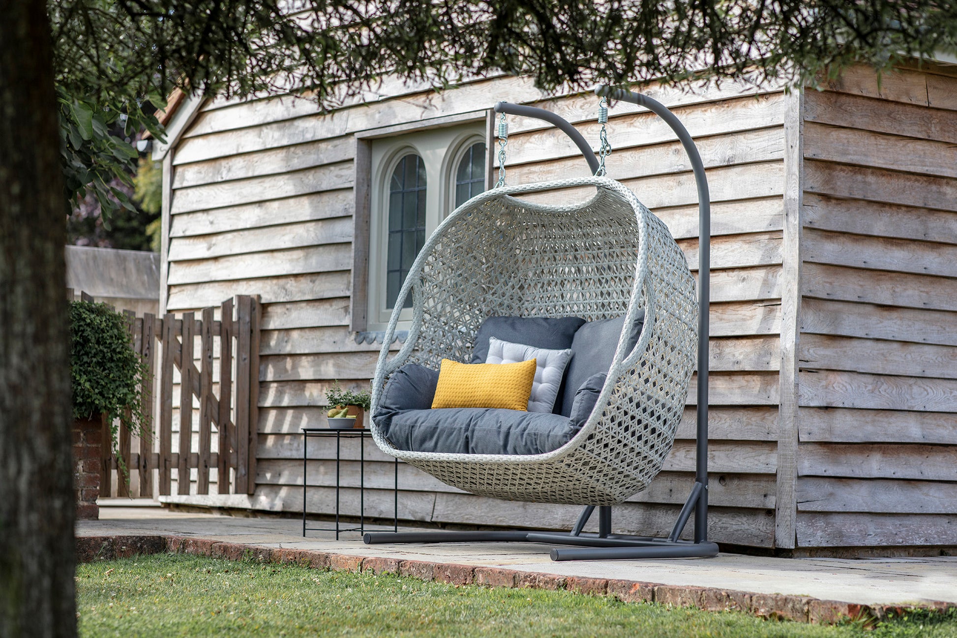 The ultimate restful retreat, our eye-catching double cocoon will easily lure you outdoors. A modern take on the traditional swing seat, it can be moved around to suit your needs. Somewhere to read, somewhere to curl up or somewhere to simply hang out solo or with company - it' s your call.