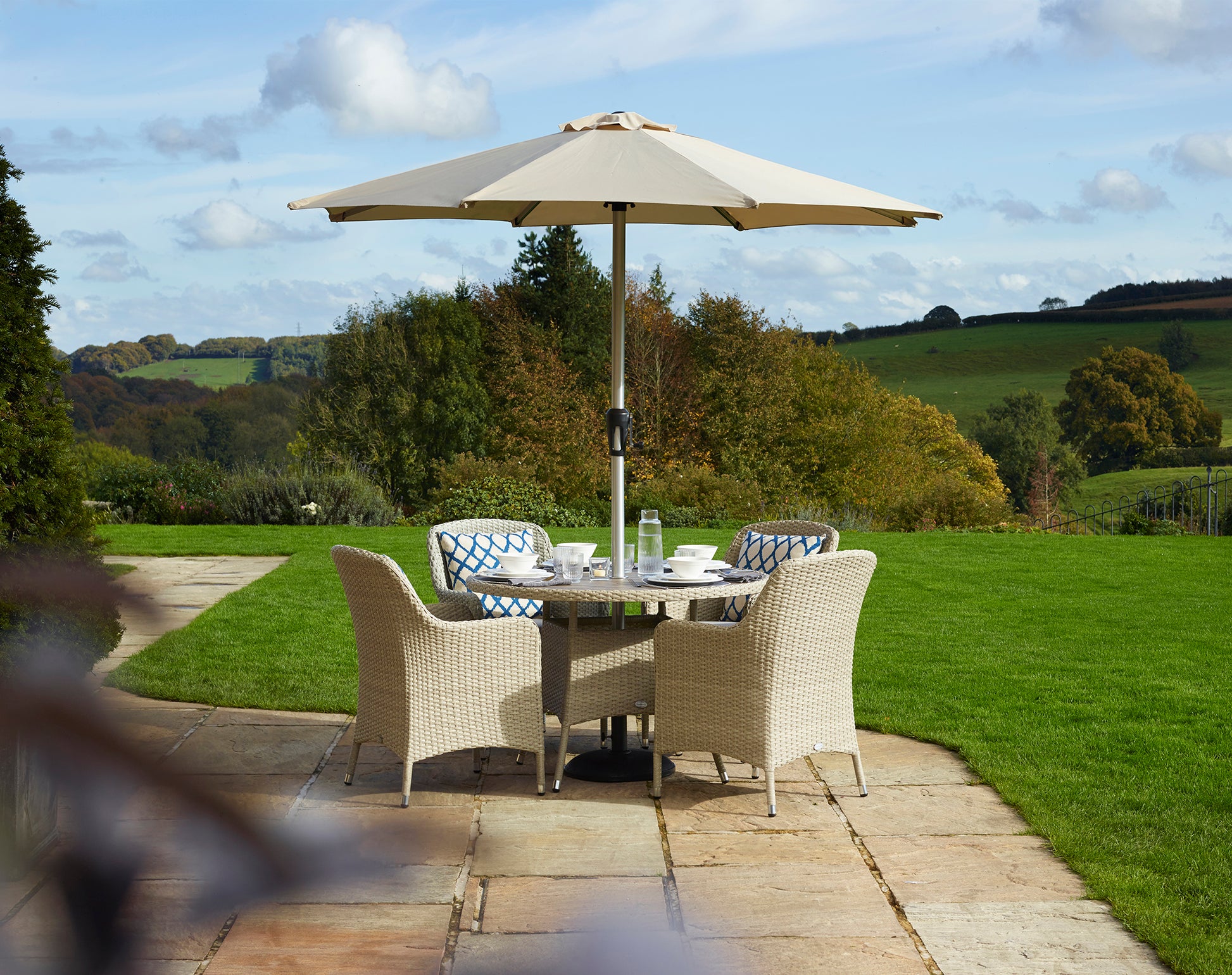 - 1 x Tetbury Brushed Aluminium 2.5m Round Crank Handle Parasol with Sand canopy