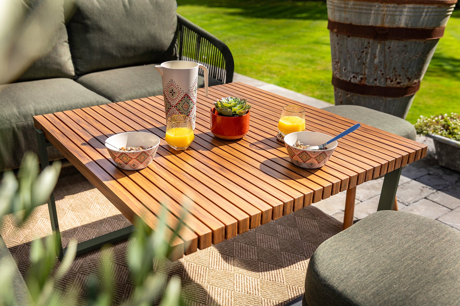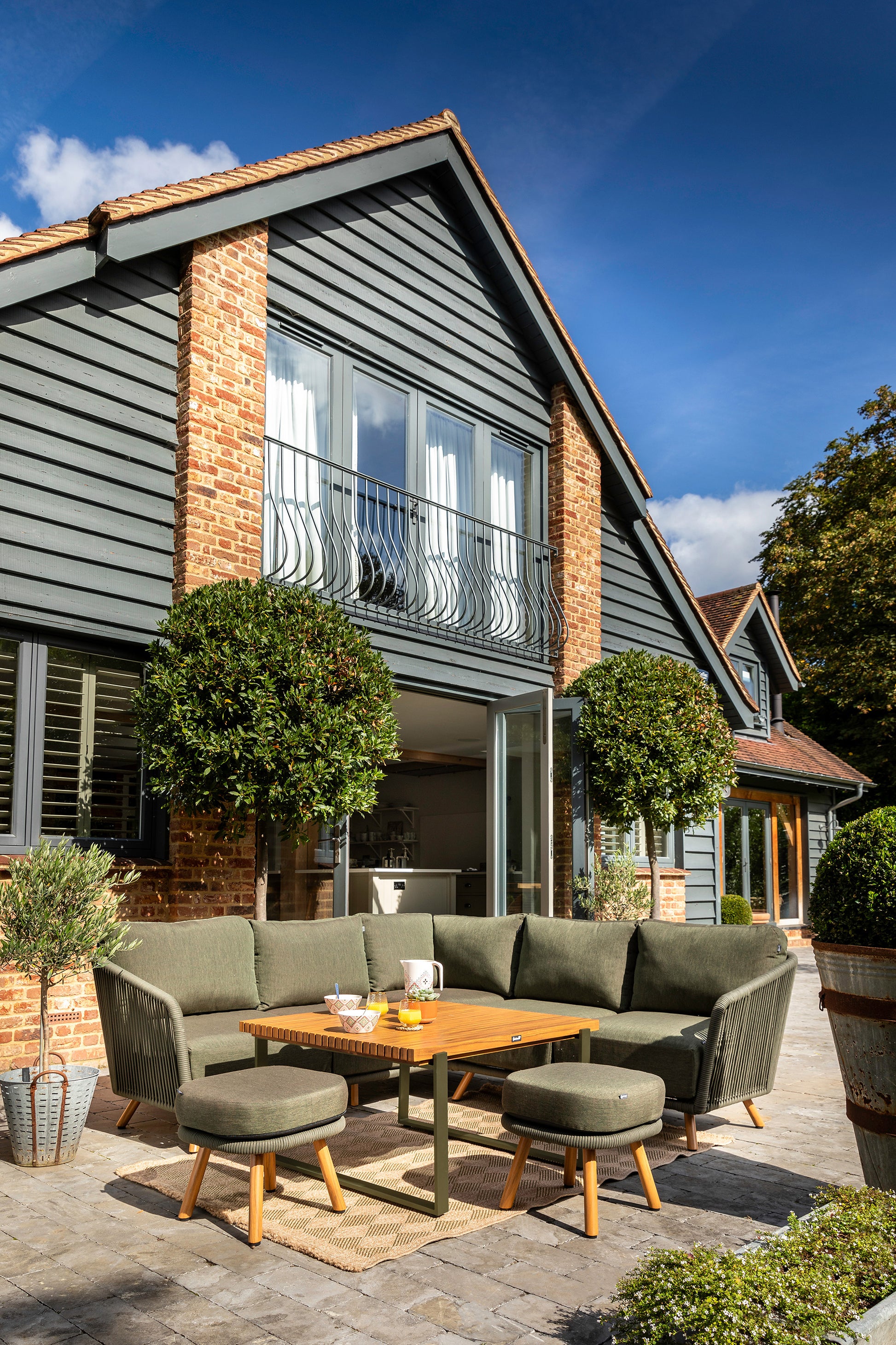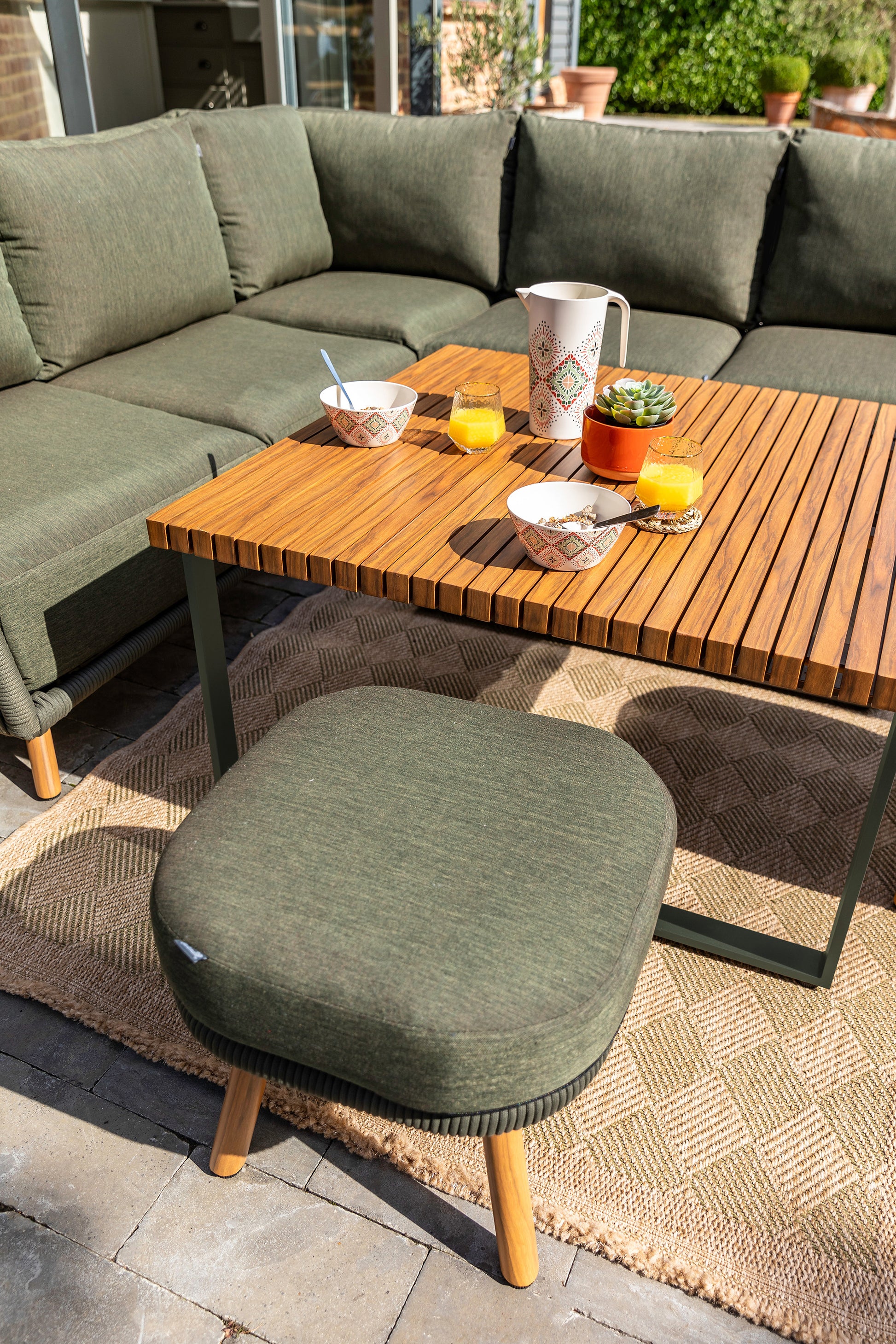 Blending opulence and comfort with serene natural tones; the Eden range is a breadth of fresh air for outdoor furniture. The 2 Seat Lounge set is perfect for the smaller garden to provide a stunning lounge space for you to sit back and relax with your favourite book. Fabricated with a beautiful all weather rope in an earthy Juniper green, which is paired with our extra chunky, sumptuous Weatherready® cushions - the most comfortable cushions for outdoor furniture. Eden is finished with our new Folie (wood-look) foiled aluminium table tops which give you the beautiful look of natural wood, without the discolouration and maintenance. If a fresh look is what you are after then Eden has style and quality in abundance.